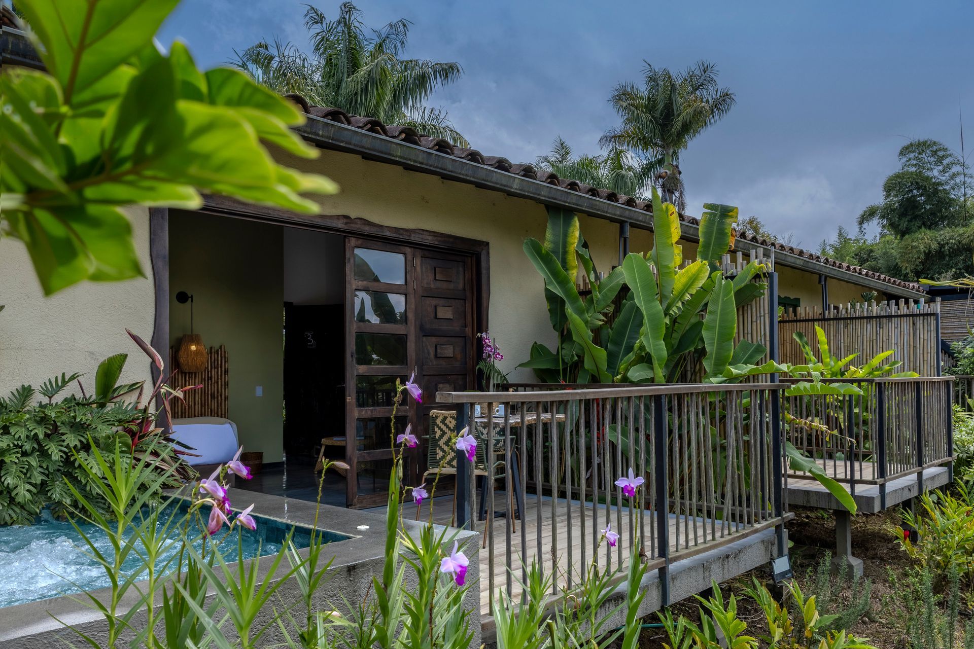 La Master Suite con Jacuzzi ofrece lujo y serenidad. Disfruta de una espaciosa cama King Size, un Jacuzzi climatizado privado en la terraza, y una impresionante vista panorámica a los jardines. El diseño elegante y los amplios ventanales crean un ambiente de máxima relajación.