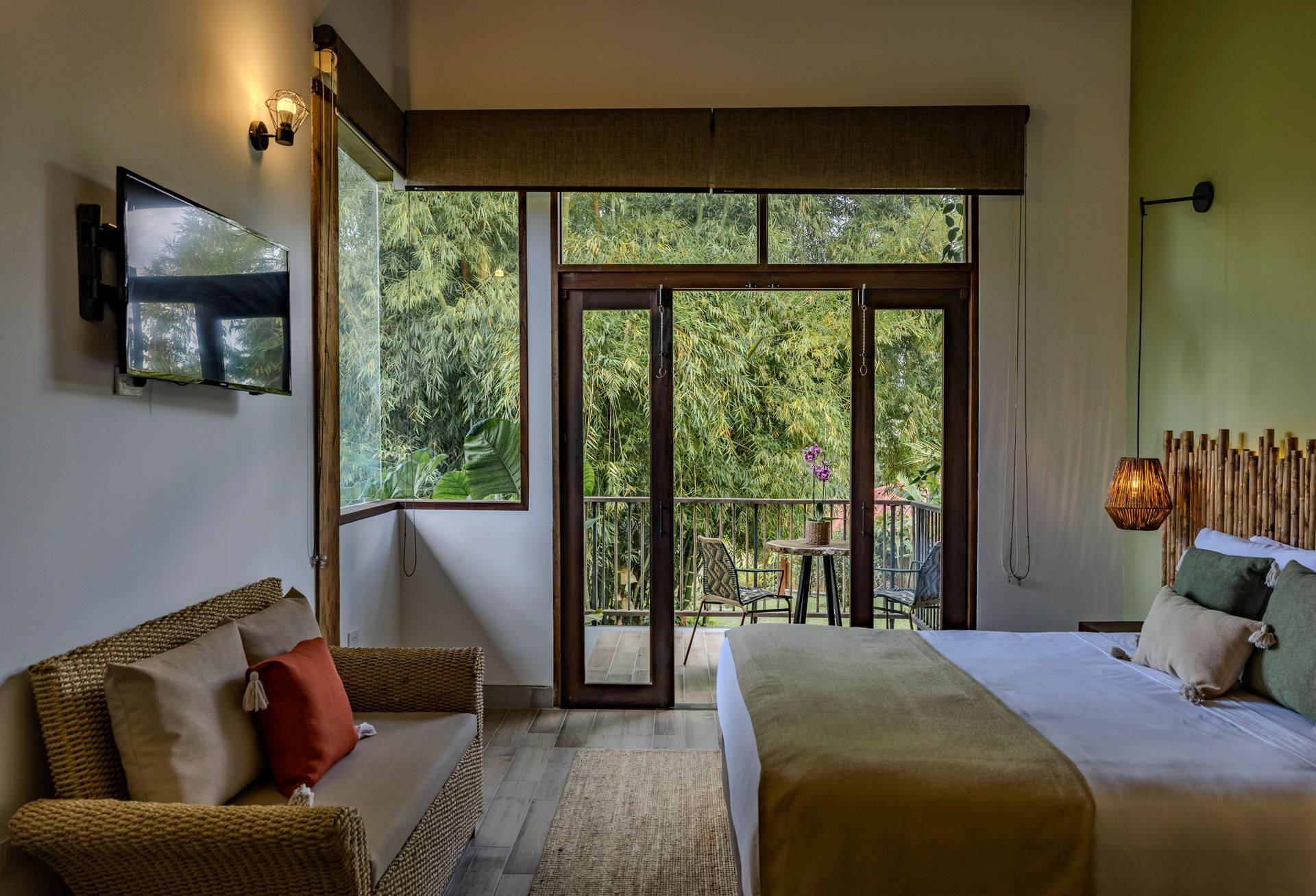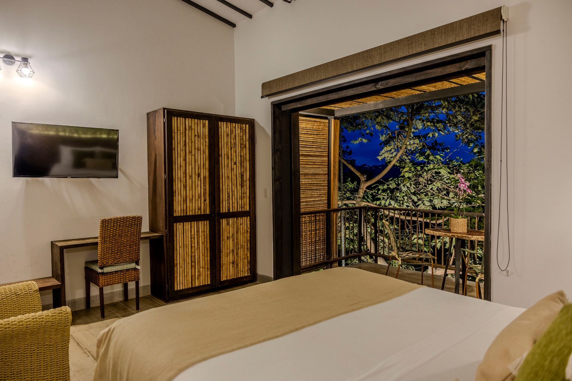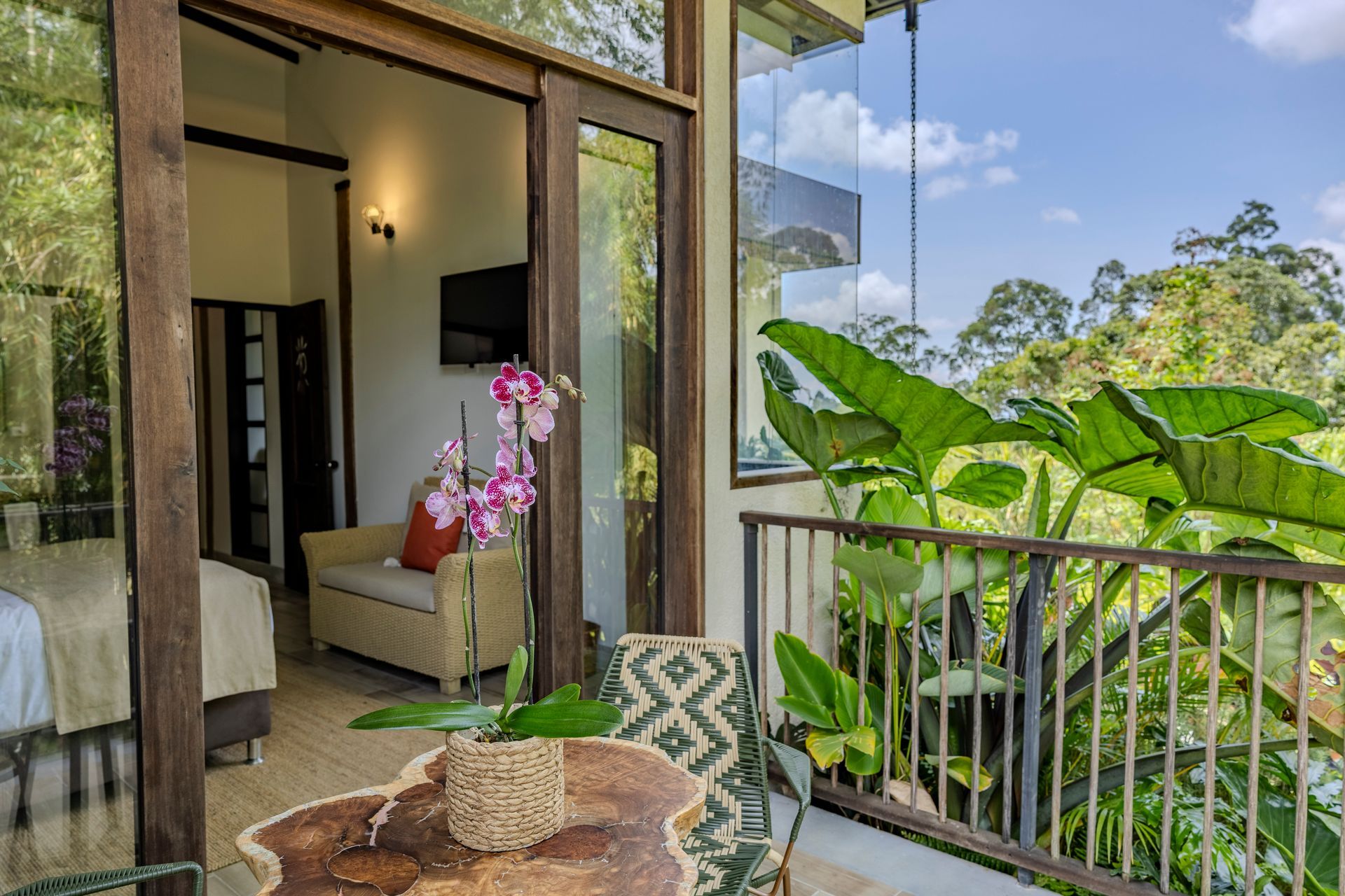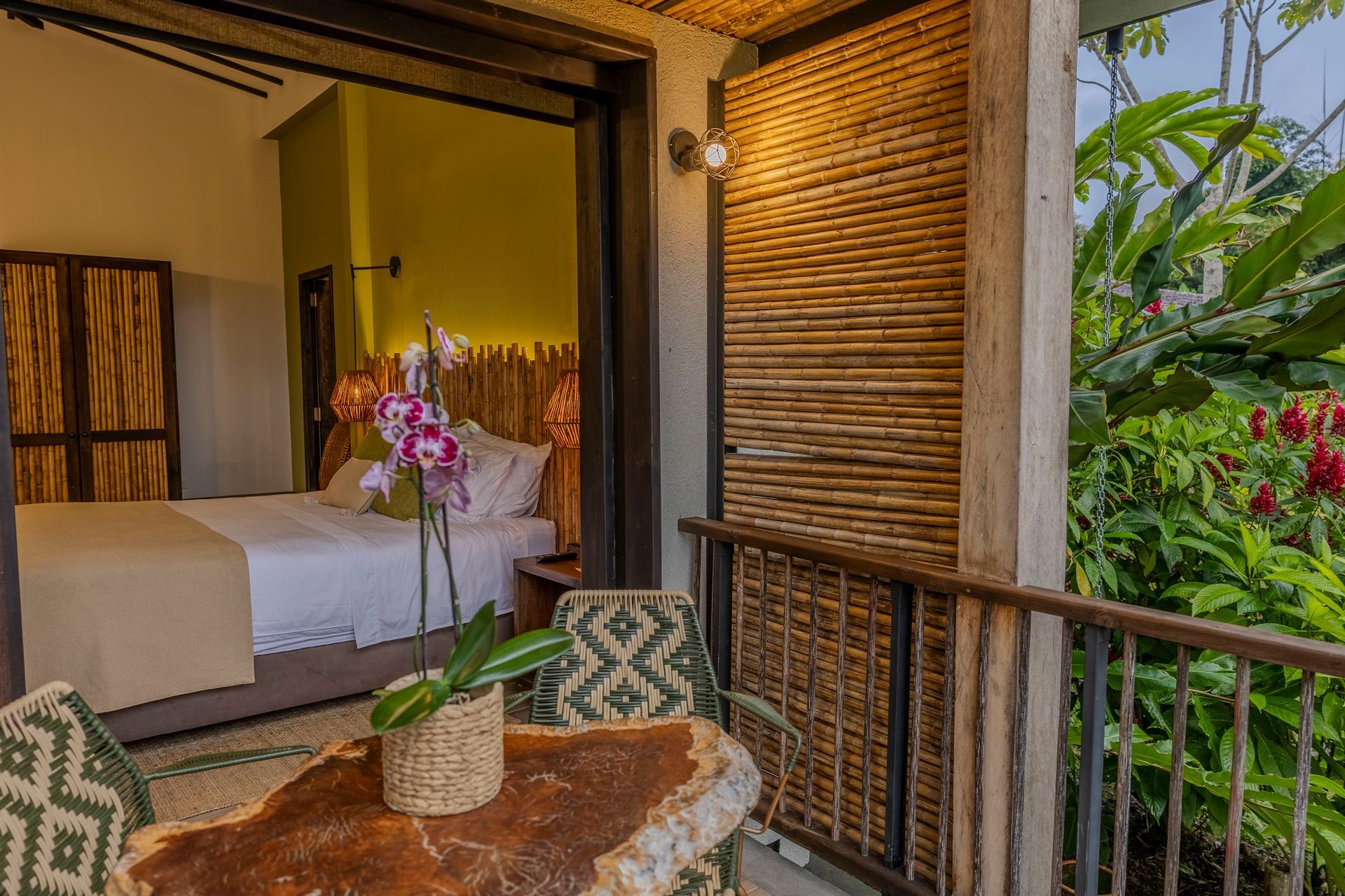 La Junior Suite Triple ofrece una estancia única con amplio espacio y diseño elegante para tu máximo confort. Disfruta de una cama Queen Size y una cama Twin Size. Su terraza con mesa y sillas es perfecta para admirar la vista panorámica a los jardines y la naturaleza circundante.